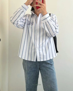 Hana stripes Shirt - Kemeja wanita - Blouse wanita - Blouse muslim - Blouse korea - Kemeja korea - Blouse bergaris - kemerja bergaris - kemeja katun - kemeja oversize - kemeja wanita lengan panjang - kemeja wanita polos - kemeja basic